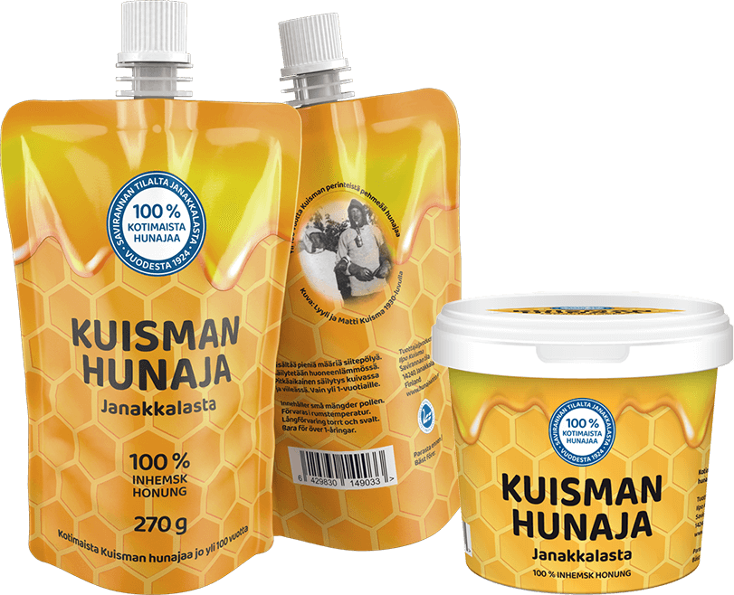 Hunajaa on saatavissa 450 g purkissa sekä uudessa innovatiivisessa 270 g pussipakkauksessa.